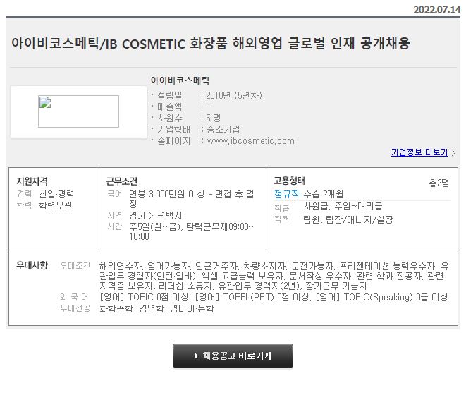 아이비코스메틱/IB COSMETIC - 화장품 해외영업 글로벌 인재 공개채용