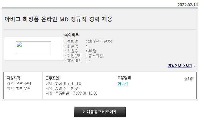 아비크 - 화장품 온라인 MD 정규직 경력 채용