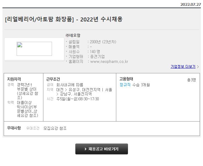 네오팜 - [리얼베리어/아토팜 화장품] - 2022년 수시채용