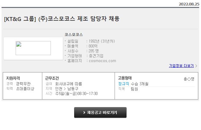 코스모코스 - [KT&G 그룹] (주)코스모코스 제조 담당자 채용