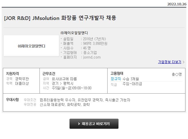 제이오알알앤디 - [JOR R&D] JMsolution 화장품 연구개발자 채용