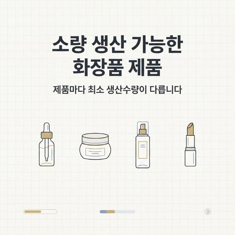 일반적인 기초 제품은 소량 생산이 가능한 경우가 많습니다. 스킨, 로션, 크림, 앰플, 에센스 같은 제품은 100개, 500개 단위로도 진행할 수 있는 제조사가 있습니다. 처음 브랜드를 시작하면서 리스크를 줄이고 싶다면, 기초 제품부터 소량으로 테스트해보는 것이 가장 현실적인 선택입니다.