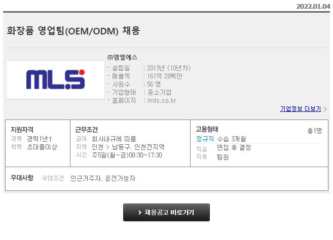 엠엘에스 - 화장품 영업팀(OEM/ODM) 채용