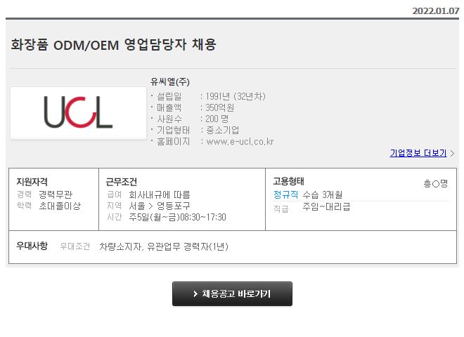 유씨엘 - 화장품 ODM/OEM 영업담당자 채용