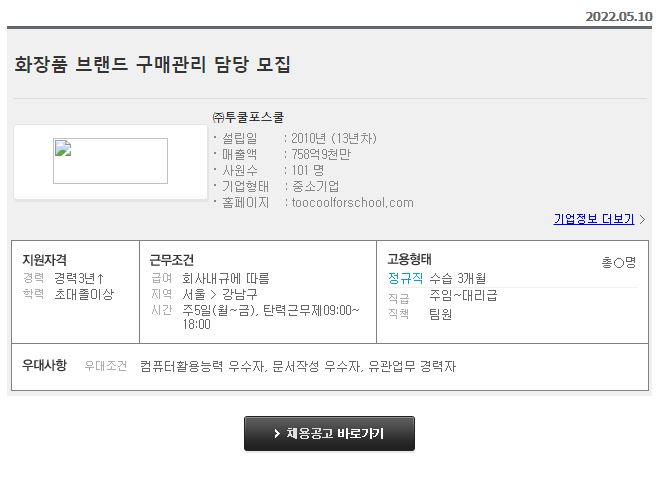 투쿨포스쿨 - 화장품 브랜드 구매관리 담당 모집