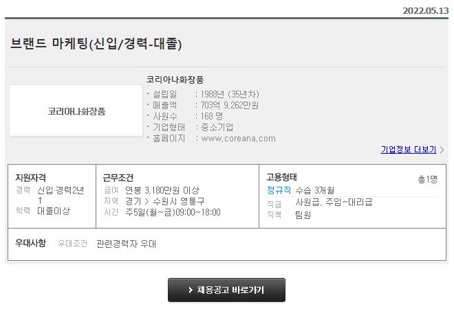 코리아나화장품 - 브랜드 마케팅(신입/경력-대졸)