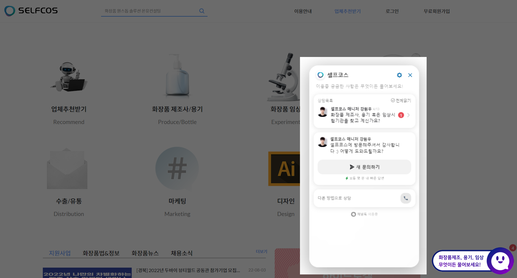 화장품 제조, 궁금한건 바로 물어보고 제조사 매칭까지! |