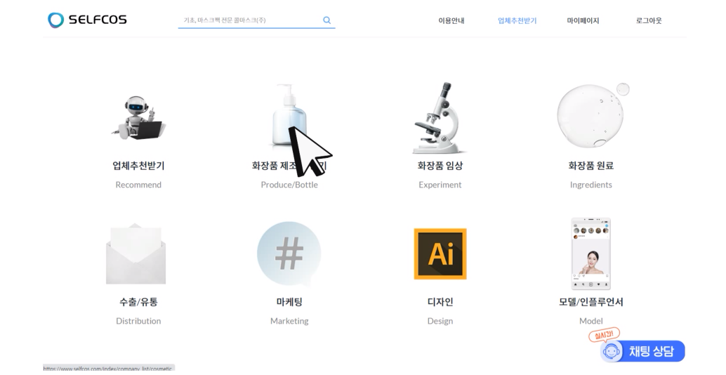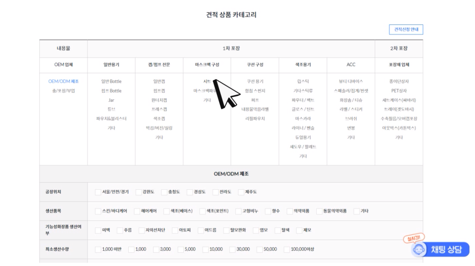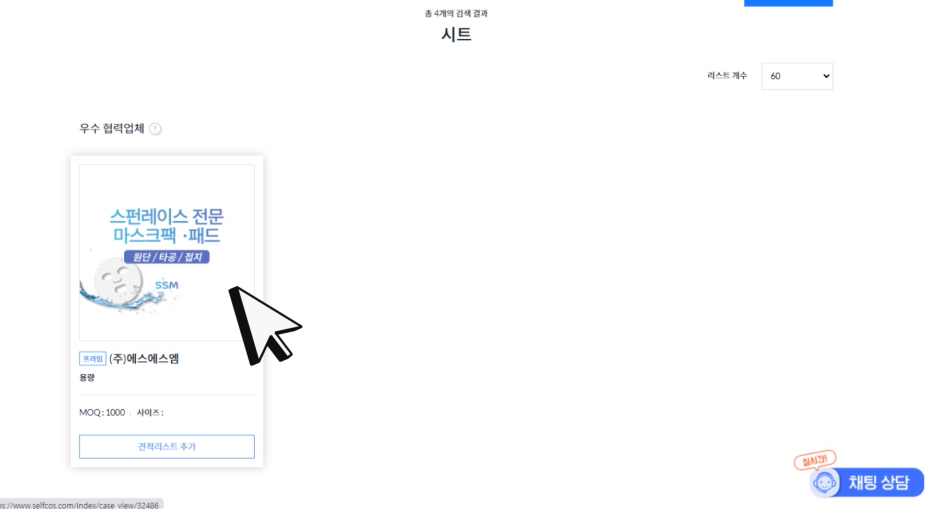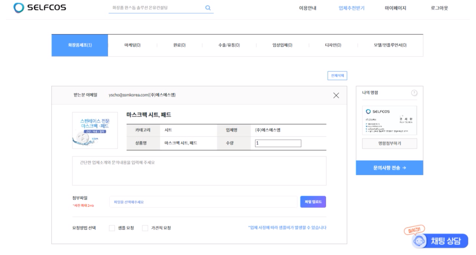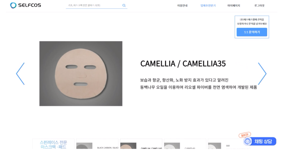 제가 개발한 화장품 제조사 매칭 플랫폼인 셀프코스에서는, 다양한 마스크팩 시트 종류를 확인하고 샘플을 받아볼 수 있습니다.