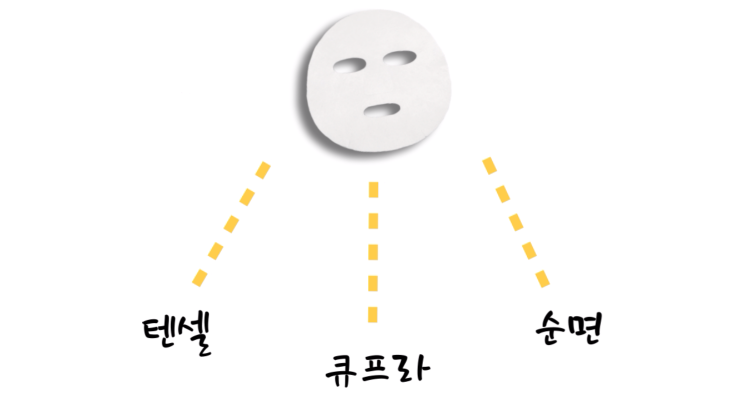 마스크시트 종류는 텐셀, 큐프라, 순면등 매우 다양한데요,