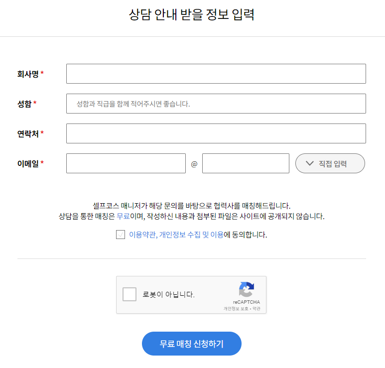 이 방법이 어려우시다면 언제든지 매칭 상담을 남겨주시면 됩니다. 매칭 상담을 신청하시는 방법은 다음과 같아요. 홈페이지에서 '무료 매칭 받아보기'를 눌러주세요.