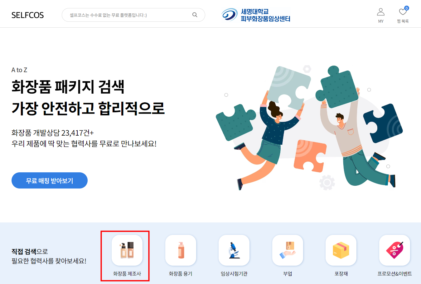 1. 먼저 어떤 제품을 출시해야 할지를 결정해 주세요. 출처 unsplash / Alexandra Tran 그러려면 트렌드를 먼저 파악해야겠죠. 뷰티누리, 코스인코리아, 트렌디어 같은 화장품 업계 사이트를 보고 트렌드를 파악해 줍니다. 트렌드 파악 후 PDRN 성분을 활용한 앰플을 만들기로 했다고 예를 들어 볼게요. 2. 제조사를 찾아야 합니다 특히 제조사는 소량생산을 해주는 제조사가 중요할 텐데요. 1,000개 정도의 소량을 제조하는 제조사를 어떻게 찾아야 하는지 알려드리겠습니다. 먼저 셀프코스 홈페이지에 접속해 주세요. '화장품 제조사' 배너를 클릭해 주세요. 그럼 아래 이미지와 같이 필터를 설정할 수 있는 곳이 나옵니다. 미백, 주름을 모두 선택하고 최소생산수량은 1,000개로 입력해주세요. 그 후 '필터 적용하기'를 눌러줍니다.
