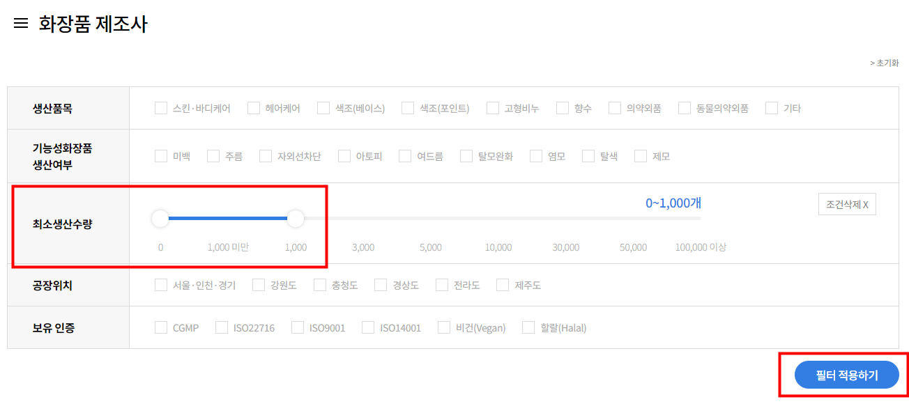 그러니 화장품 개발 의뢰를 하실 땐, 막연히 머릿속에 있는 제품을 구체화하려고 하시지 말고 무조건 타겟 제품을 찾으시는 게 중요함을 말씀드려요. 2. 타겟 제품을 정하셨으면, 화장품 창업에서 가장 중요한 제조사를 찾는 단계가 됩니다. 특히 제조사는 소량생산을 해주는 제조사가 중요하죠. 일반 기초 스킨, 로션, 크림, 앰플 등을 1,000개 정도 소량 생산하는 제조사는 셀프코스 홈페이지에서 찾으실 수 있습니다. 먼저 셀프코스 홈페이지에 접속해 주세요.