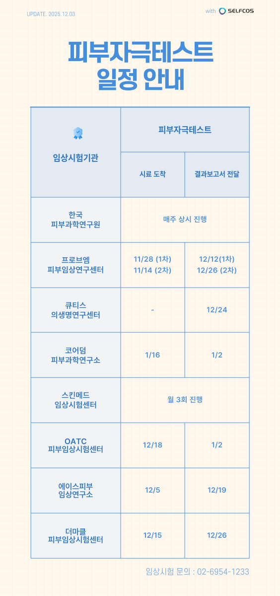 임상시험기관 피부자극테스트 일정 (25년 12월)