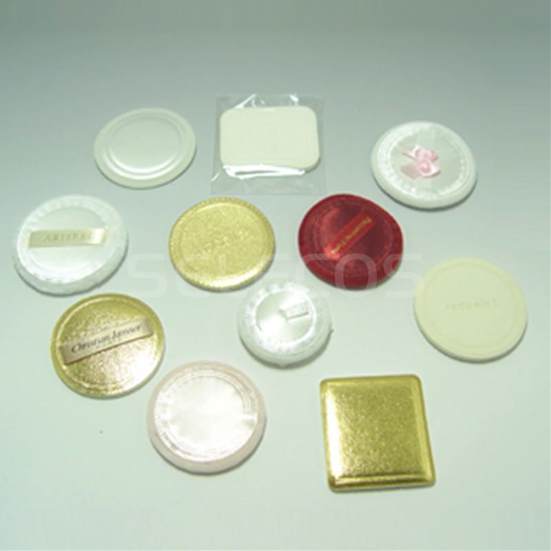 • 샤틴, 레자에 후로킹,NBR, 극세사등을 부착하여 제작하고 트윈케익,화운데이션,파우다등 용도에 맞추어 사용