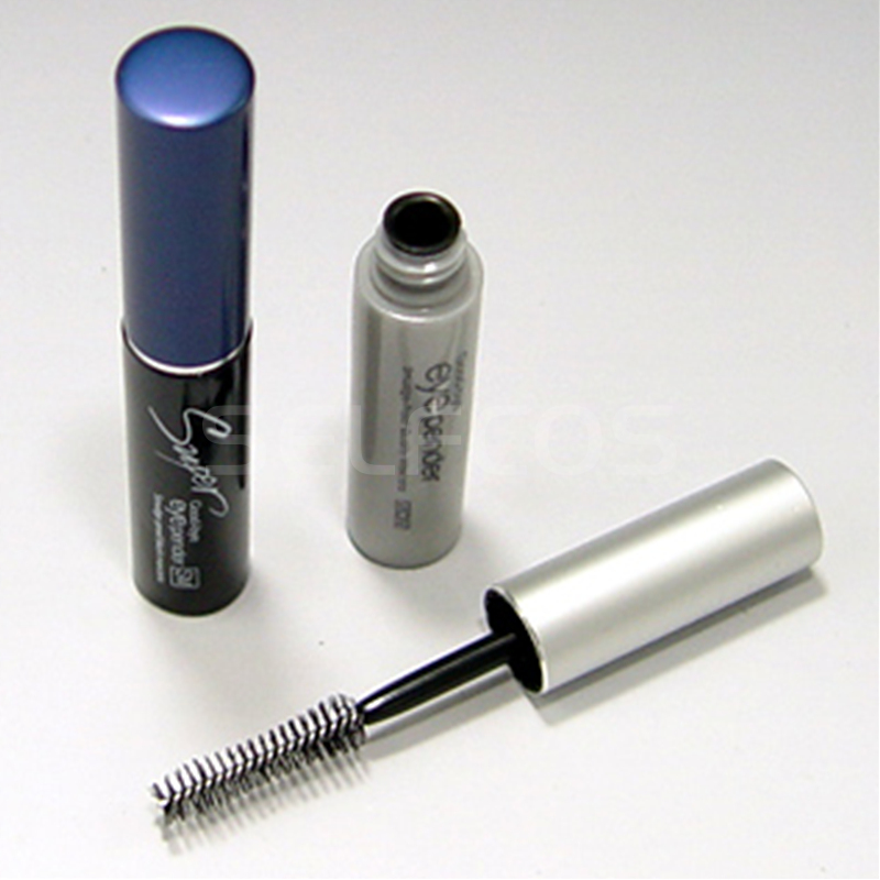 아이콘 5ml 원형 마스카라 용기로 용기 재질은 PET 이고 캡은 알루미늄 또는 ABS 임.